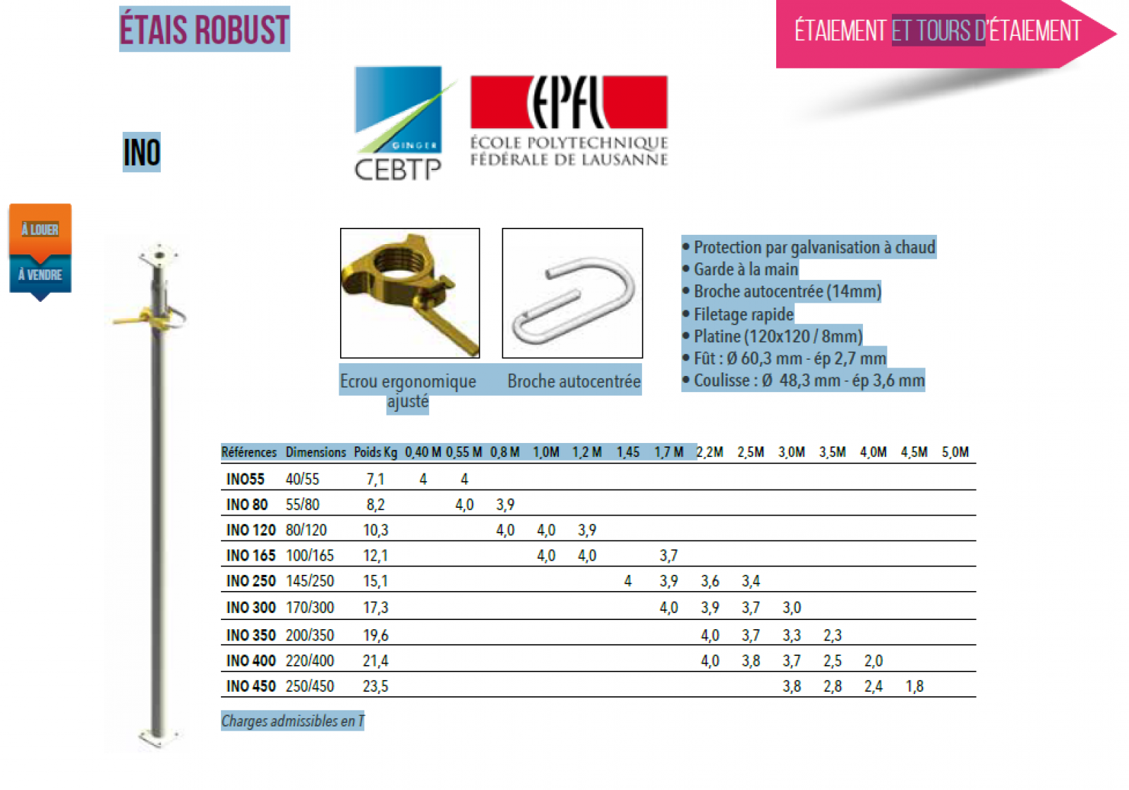 Marque : COPAC - Modèle : LOT D'ÉTAIS INO 450 "ROBUST" - NEUF - Qualité :